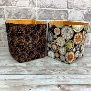 Steampunk Clocks Fabric Basket, Storage bin, Choice of colours, Handmade